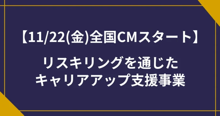 2024年11月22(金)より、経済産業省「リスキリングを通じたキャリアアップ支援事業」のCMが全国放映されることになりました。 本事業は新たな分野や職務におけるスキルを習得する「リスキリング」(=学び直し)を支援する事 […]