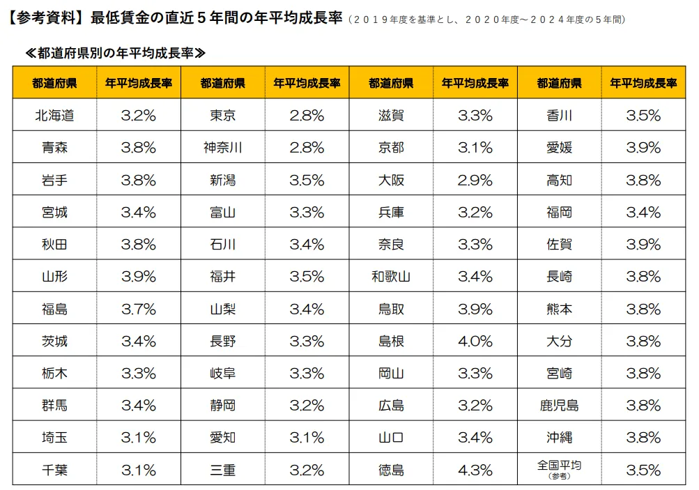 ※引用元:厚生労働省:地域別最低賃金の全国一覧