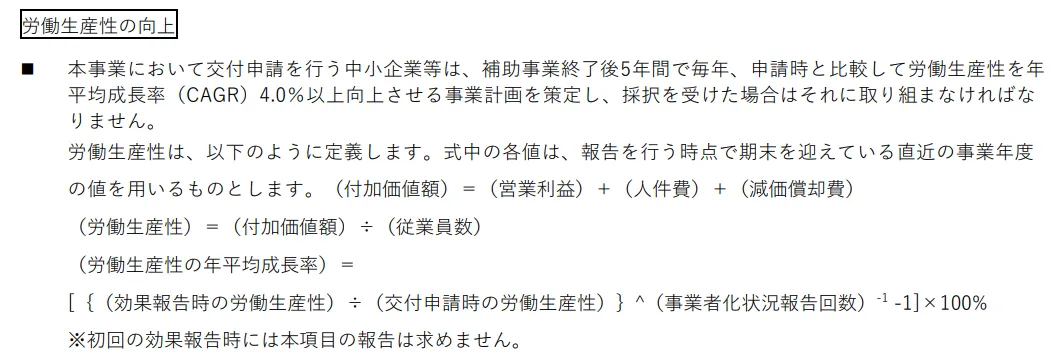 ①労働生産性の年平均成長率を4.0%以上増加させること。