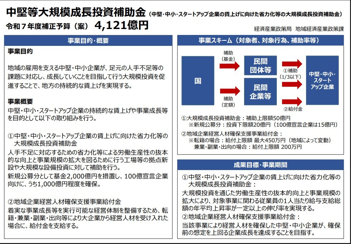 - 【最大50億円】中堅等大規模成長投資補助金