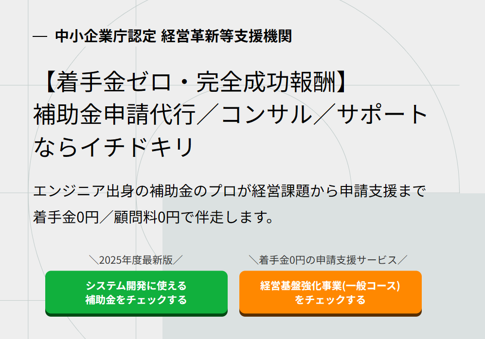 補助金申請代行・コンサルのイチドキリ|着手金0円・完全成功報酬 読み込まれました
